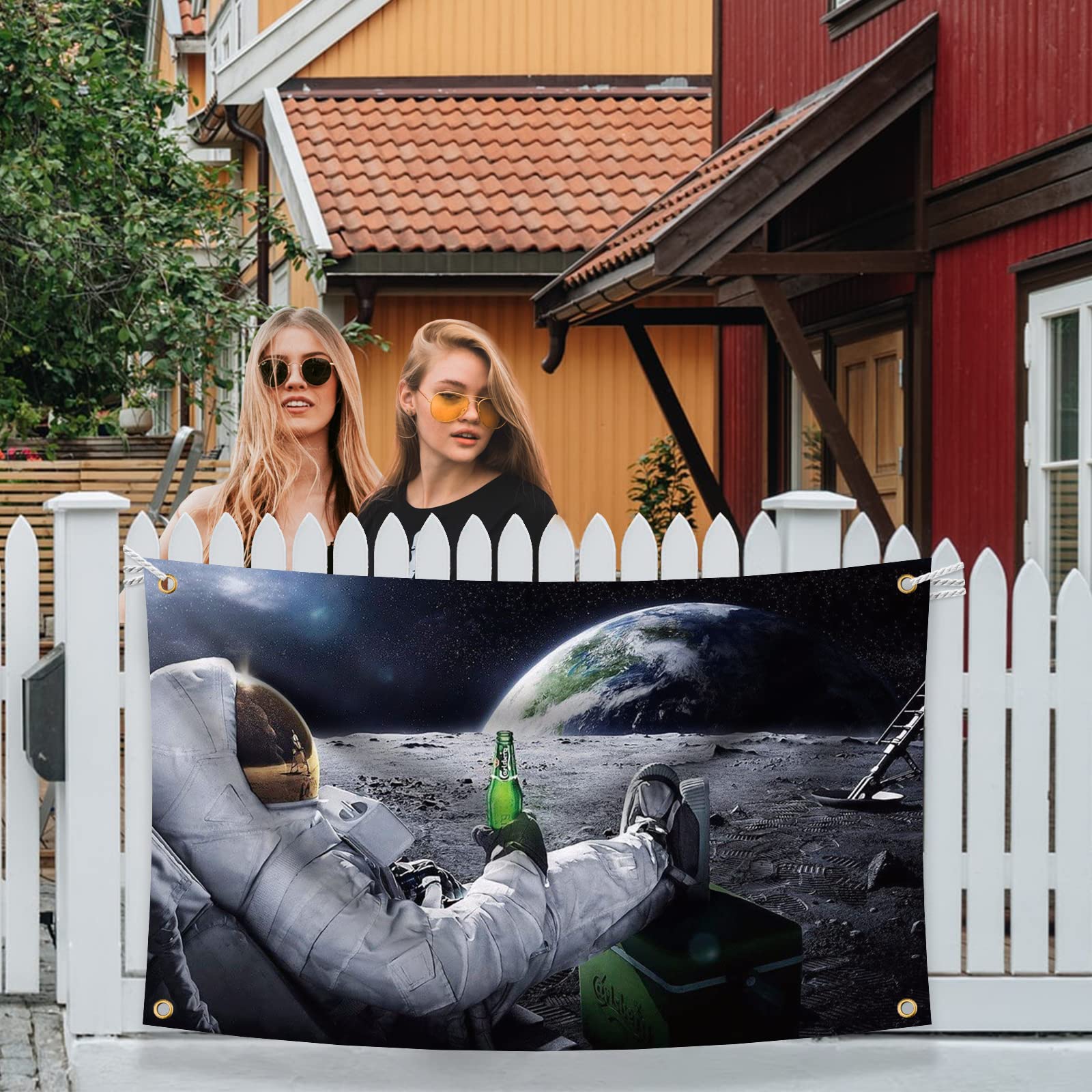 Astronaut Relaxing and Drinking Beer on The Moon in Outer Space Flag 3x5