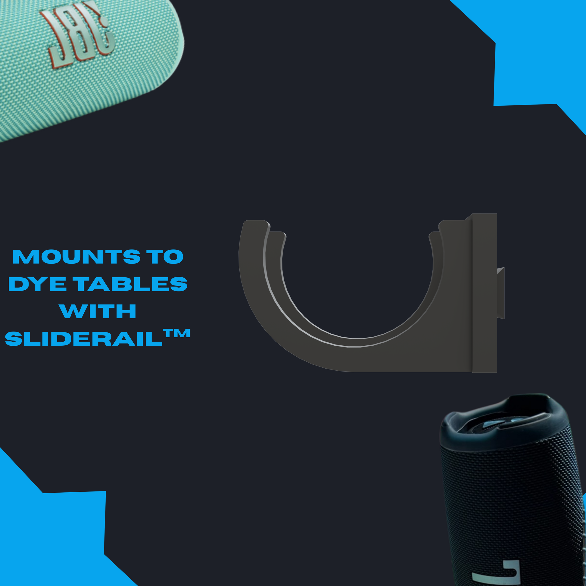 What's a party without bass? Drop in sound you can feel with the Dye Table Speaker Mount - a rugged, slide-on holder designed to grip JBL Flip 5,6,7 and JBL Charge 4,5 speakers.