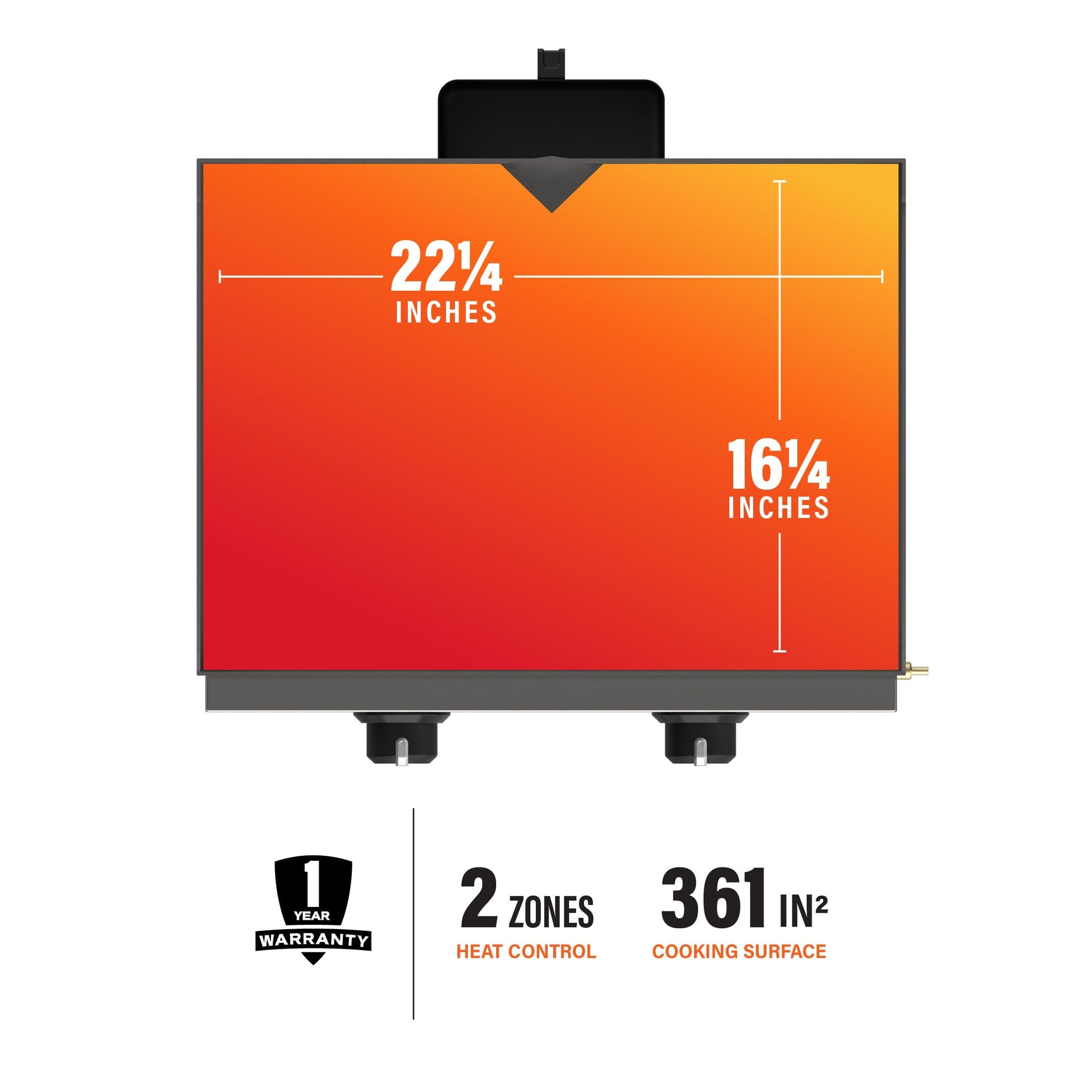 - Total Heat Control: Two independently controlled H-shaped burners ensure optimal heat distribution and even cooking on the griddle surface while allowing you to cook multiple foods at different temperatures simultaneously.