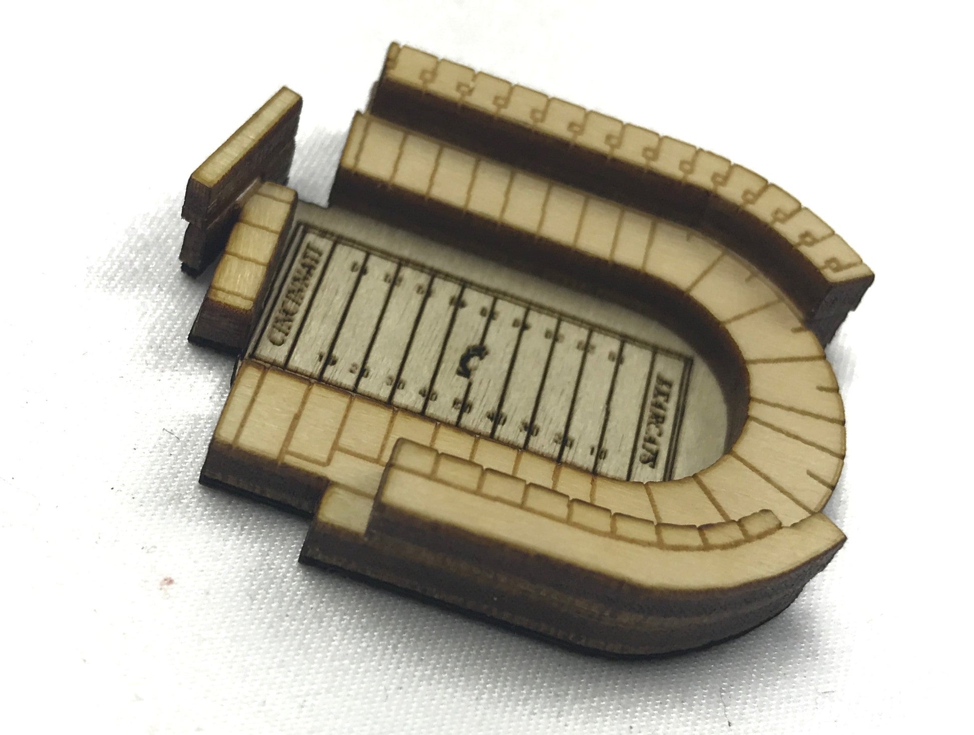 Make a bold statement with StadiumMapArt! Check out this state-shaped, laser cut wood art featuring your favorite teams' stadium and its locale. Major highways and interstates are engraved and labeled. Highlighting this aerial image is the uniquely designed and handcrafted 3D stadium. Displaying this signed piece on your wall is a sure-fire way to spark a sports conversation or ignite a fond memory. Show your spirit and score a win with StadiumMapArt!