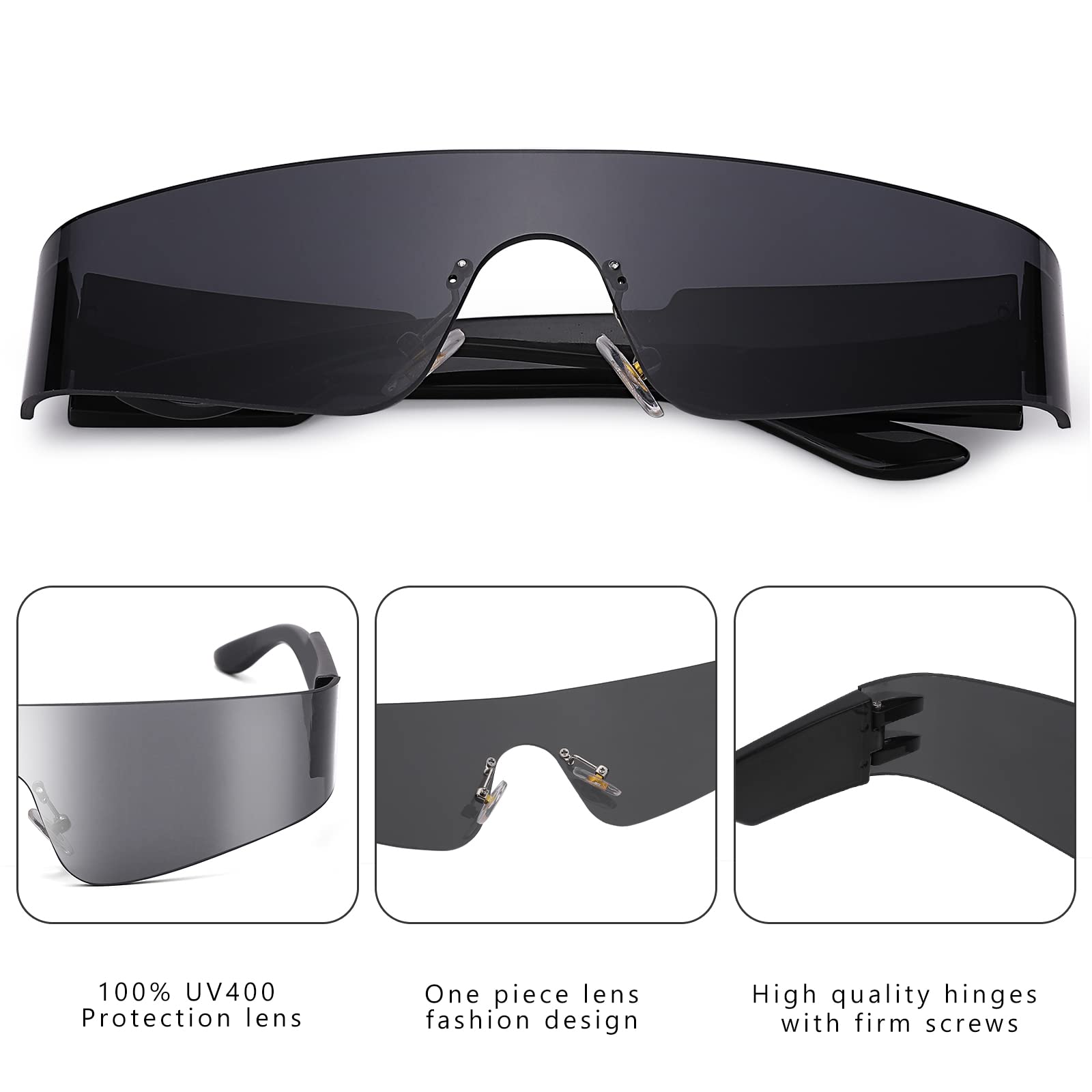 - Fashion Unique Design: The futuristic sunglasses have an one piece and flat top design and aesthetically pleasing appearance, flexible wrap around style frame is full of futuristic technology and is very fashionable.