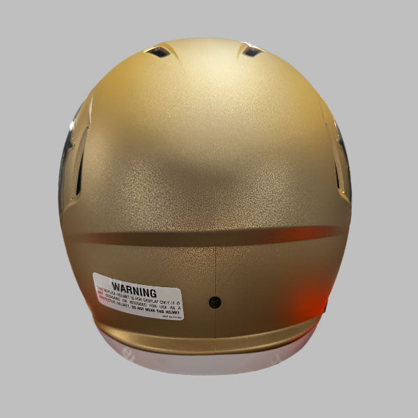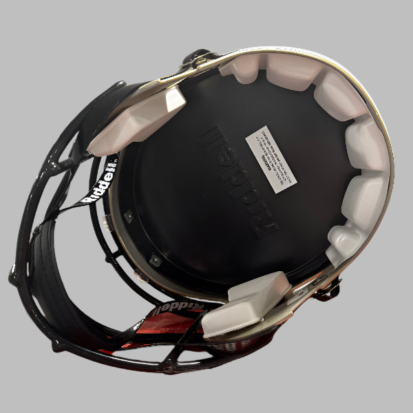 Colorado Buffaloes Full Size Speed Replica NCAA Helmet by Riddell. This full size Colorado helmet is designed with a non-wear plate and molded foam jaw pads. a steel polyvinyl-coated face mask, 4-pt chin strap, and elliptical air vents. This officially licensed NCAA helmet is great for autographs and features Colorado team logo decals on both sides. The striking shape of the future. NCAA Colorado Replica Speed helmet size medium measures: 12.75"(L), 9.25"(W), 9.75"(H). NCAA Colorado Buffaloes Full Size Speed Replica Helmet. (NOT FOR WEARING)