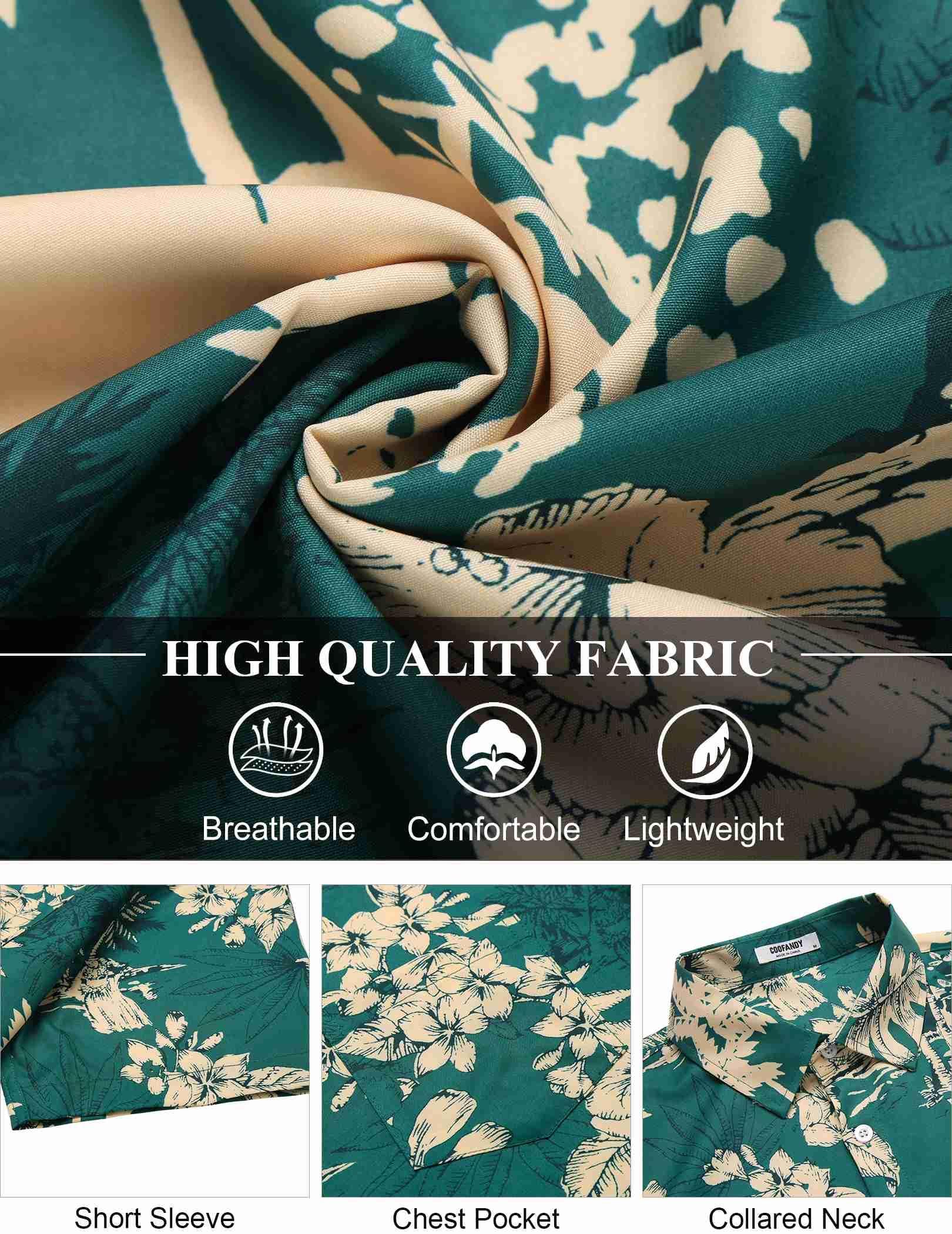 - Fabric- This men’s short sleeve Hawaiian shirt is made of quality fabric, which is lightweight, breathable, and comfortable to wear.