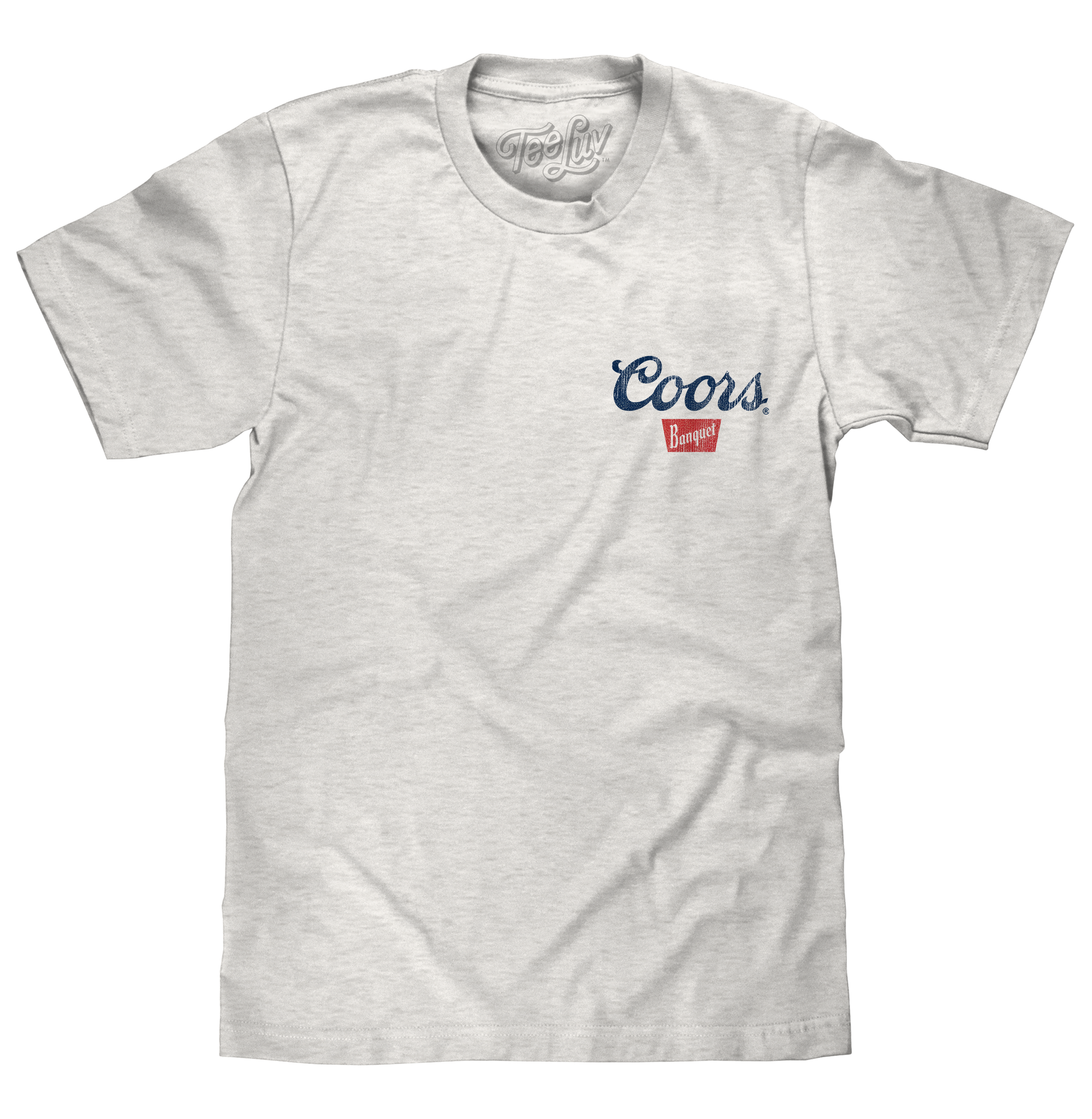 The Beer Shirt For The Modern Cowboy! First brewed in Golden, Colorado in 1873: The Coors brand doesn't just talk the talk, they've got the same daring and downright rugged spirit of those proud cowboys that roamed the Rockies! We've paid tribute to Coors' Wild West roots with a comfortable, double sided beer tee shirt featuring the always recognizable "Coors Banquet" logo on the left chest, and a full-sized version on the back along with "Golden Colorado" and "Estd 1873" text. As a nod to the pioneers of the past - the rear of this western tee features a faded image of a cowboy and horseshoe.