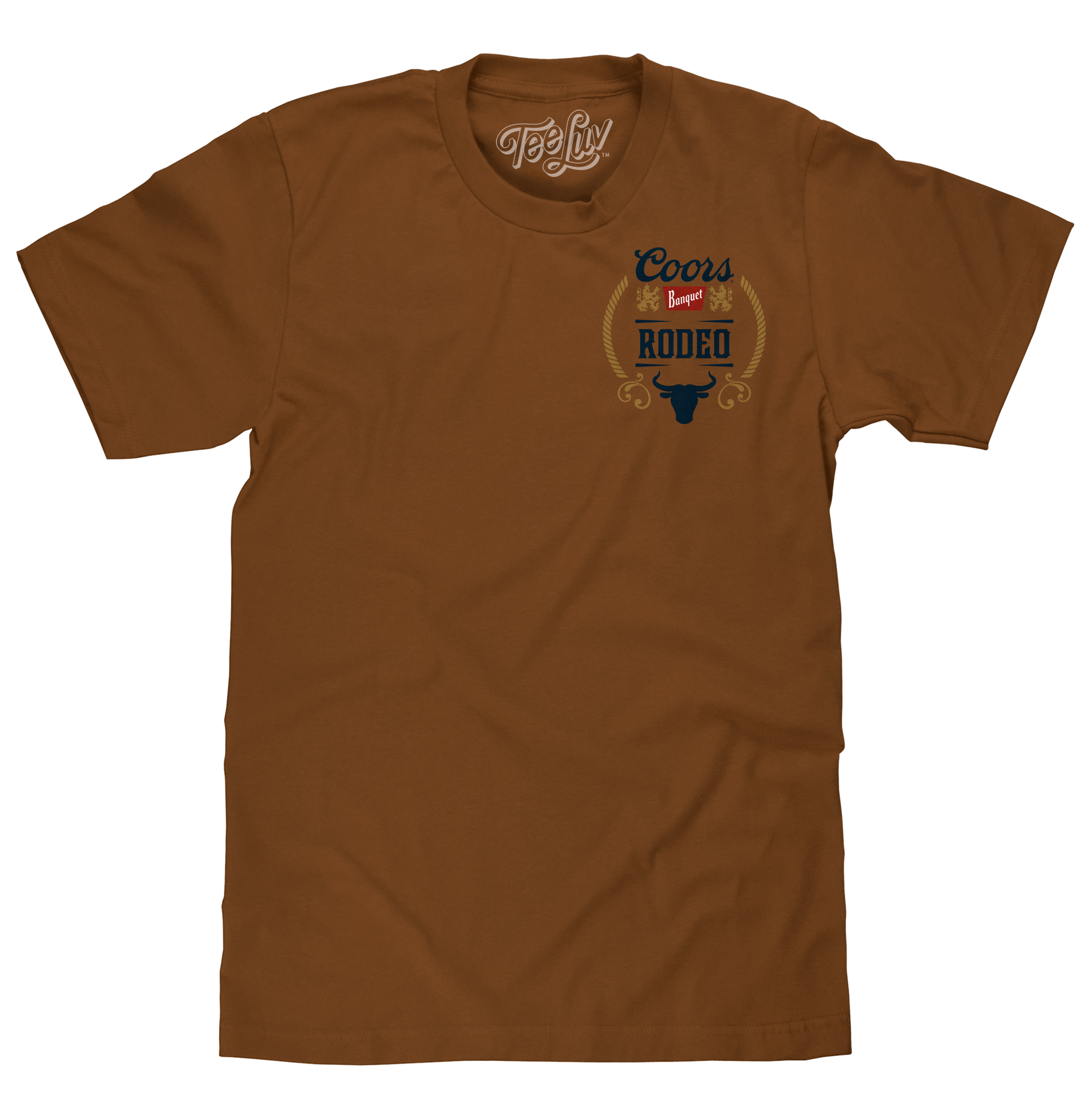 First brewed in Golden, Colorado in 1873 - Coors beer has become a symbol of the tough and adventurous spirit of the American West. It's no surprise that this brew pairs perfectly with Rodeo - a sport that demands toughness, skill and bravery! We've paid tribute to the rugged Coors brew, and the rough and tough cowboys that grab the bull by the horns with a double-sided beer shirt featuring the authentic licensed Coors Banquet Rodeo bull logo - printed on the left chest and back of a soft, brown sugar cotton tee