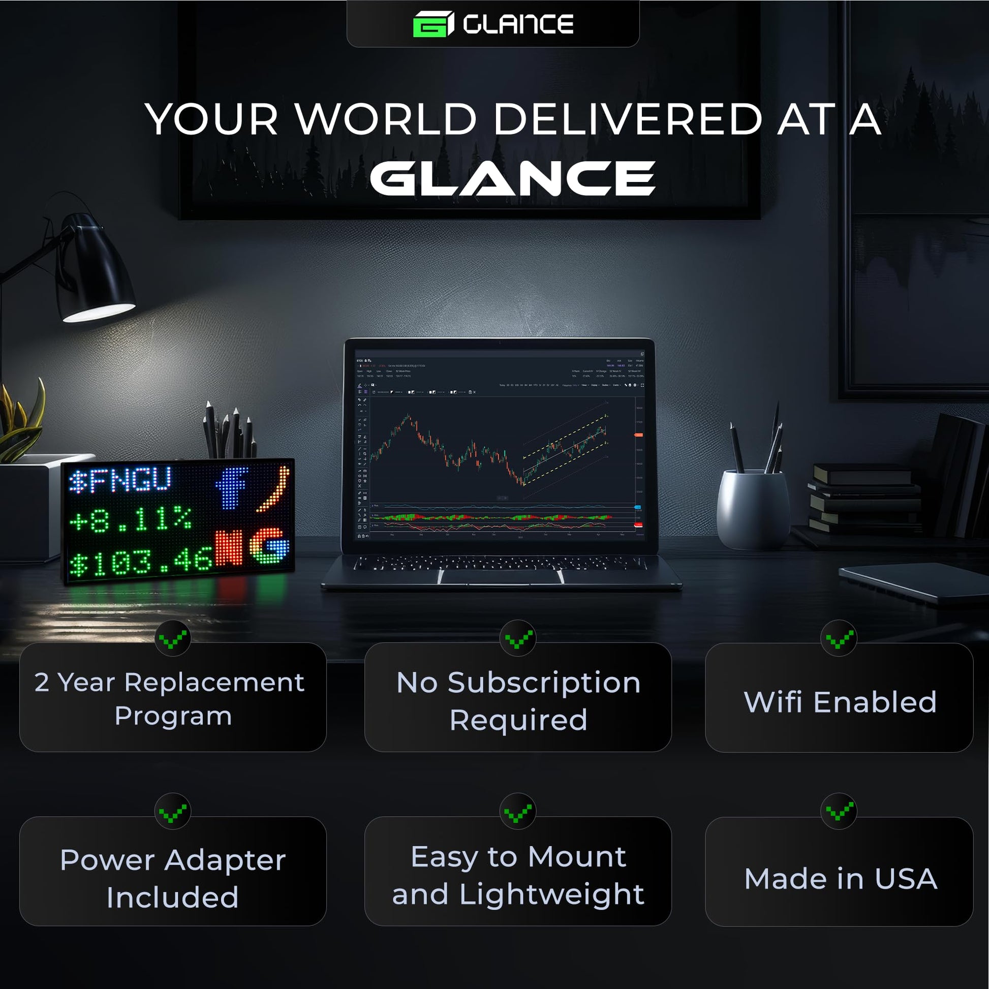 - REAL-TIME UPDATES FOR ALL YOUR INTERESTS: The Glance LED Ticker provides a single, real-time display for sports scores, stock prices, crypto updates, weather forecasts, subscriber counter, and breaking news. Track your favorite sports, stay informed on market trends, get the latest weather, and catch breaking newsโall in one convenient place. Great for those who want to stay updated with a glance, this LED ticker for the room is a must-have.