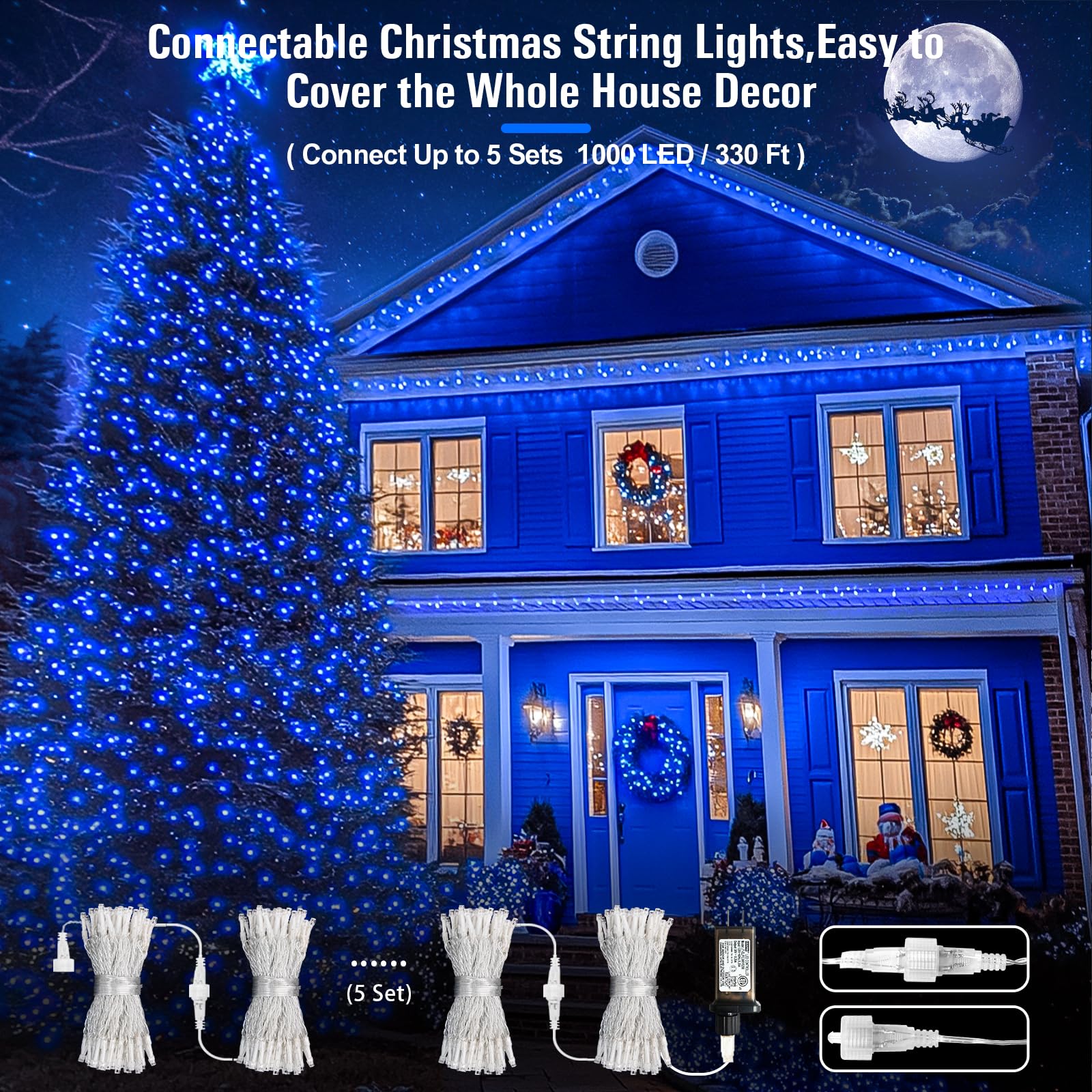 - Why Choose This Blue Christmas String Lights for Indoor and Outdoor - Super Bright with LED Bulbs, Safer Plug in(UL588 Approved), Waterproof, Connectable, 8 Lighting Modes, Fantastic Decoration, Gift Box. Perfect for Halloween, Christmas and daily decorations.