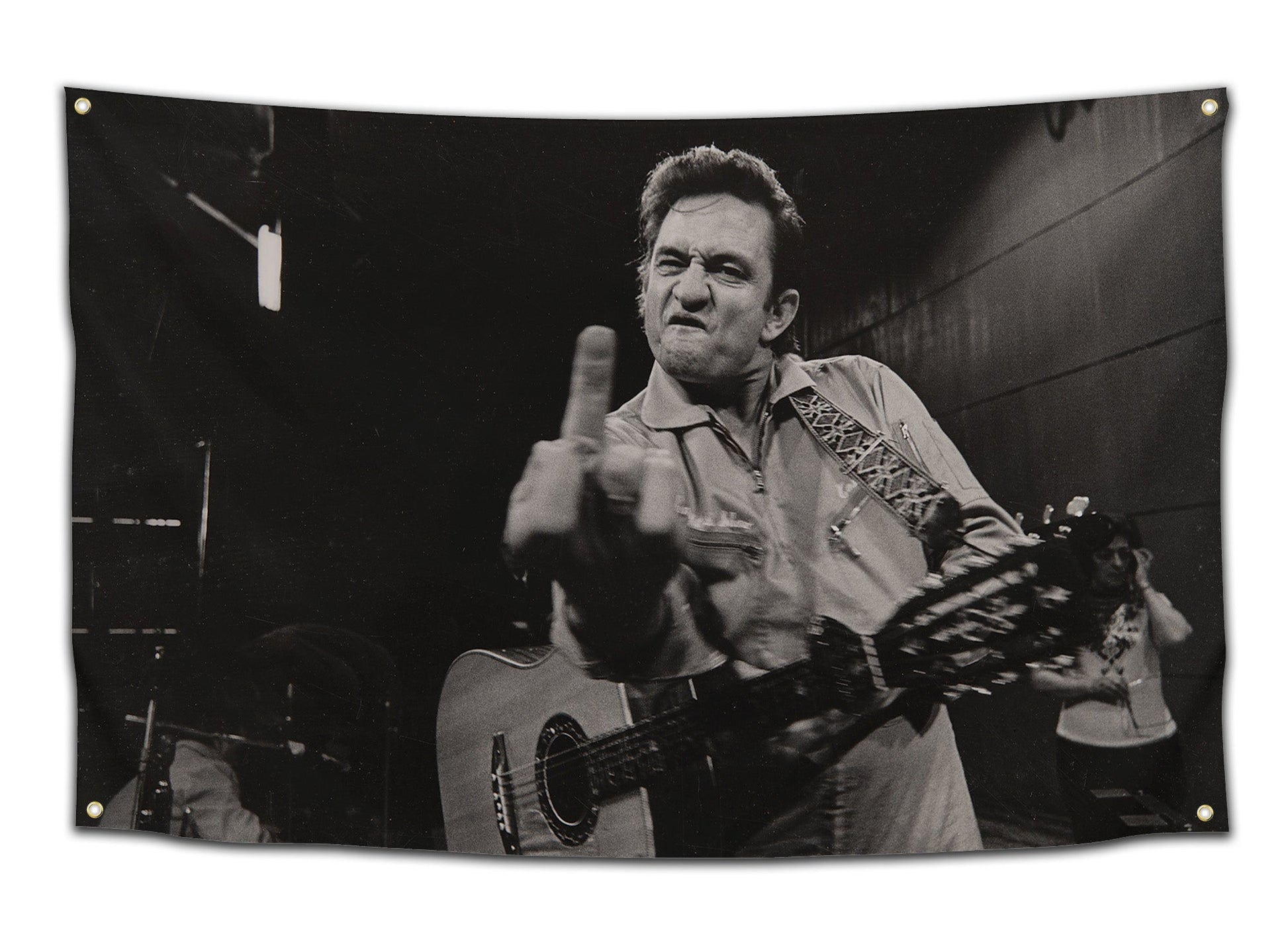 This iconic black-and-white flag features Johnny Cash mid-performance flipping the bird — a perfect power move for rebels, music heads, and dorms that don’t take sht from anyone.