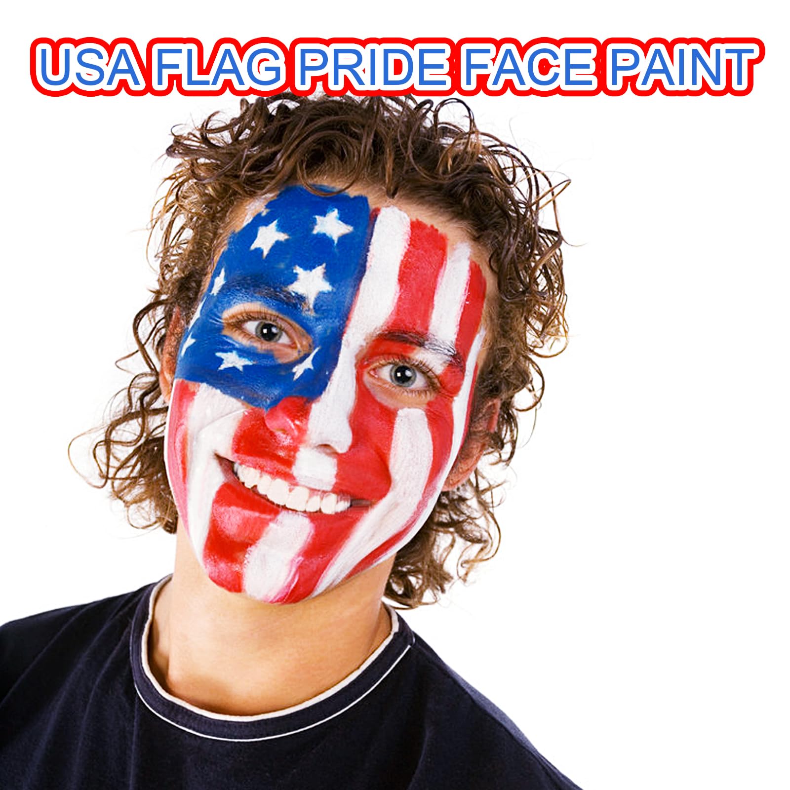 - ✔Stays Well And Lasts Long---Our red white blue body paint is easy to apply with vibrant color and stay well in the place all day with minimal smudging,gives a nice color to complete the look.It’s recommended to use the setting powder after applying the face body paint.