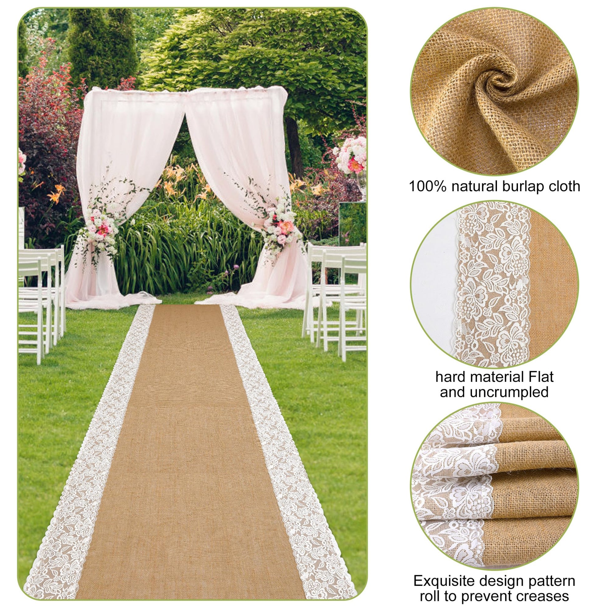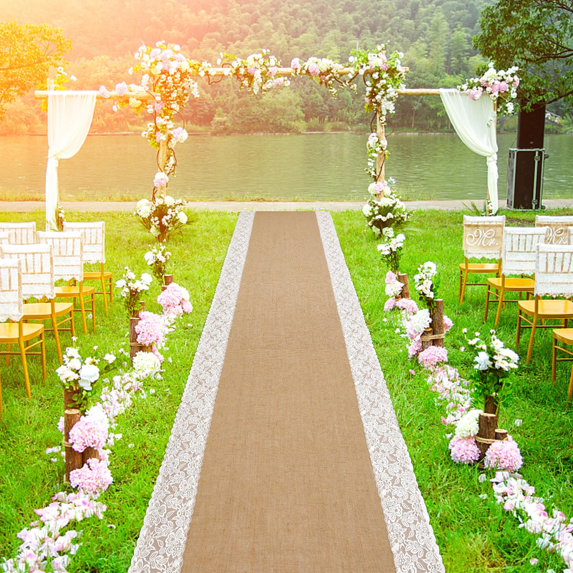 Details: moonoom moonoom Natural Burlap Wedding Aisle Runner, 20Ft x 36'' Rustic Jute Weddings Runway Carpet with Lace, Ceremony Burlap Carpet Roll for Outdoor Beach Garden Church Wedding Reception Party Craft Decor