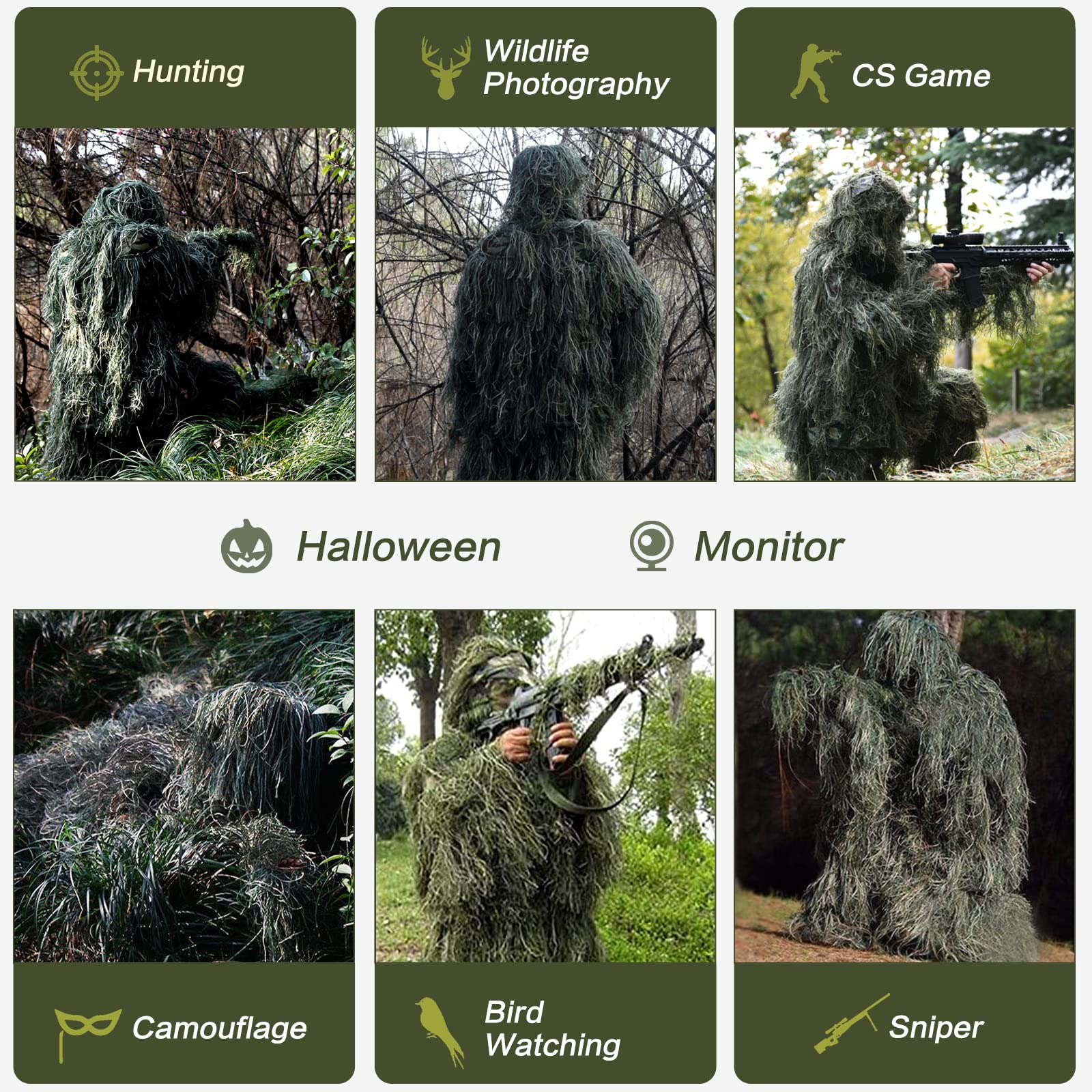 - Wide Application: Crafted from tough, durable polyester and synthetic thread, Mophotoghillie suit is ideal for hunting, shooting, paintball, airsoft, wildlife photography, birdwatching, and Halloween. It's ideal for any situation where effective camouflage is needed