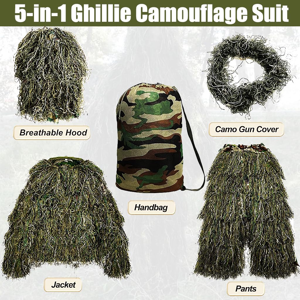 5 in 1 Ghillie Suit 3D Camouflage Hunting
