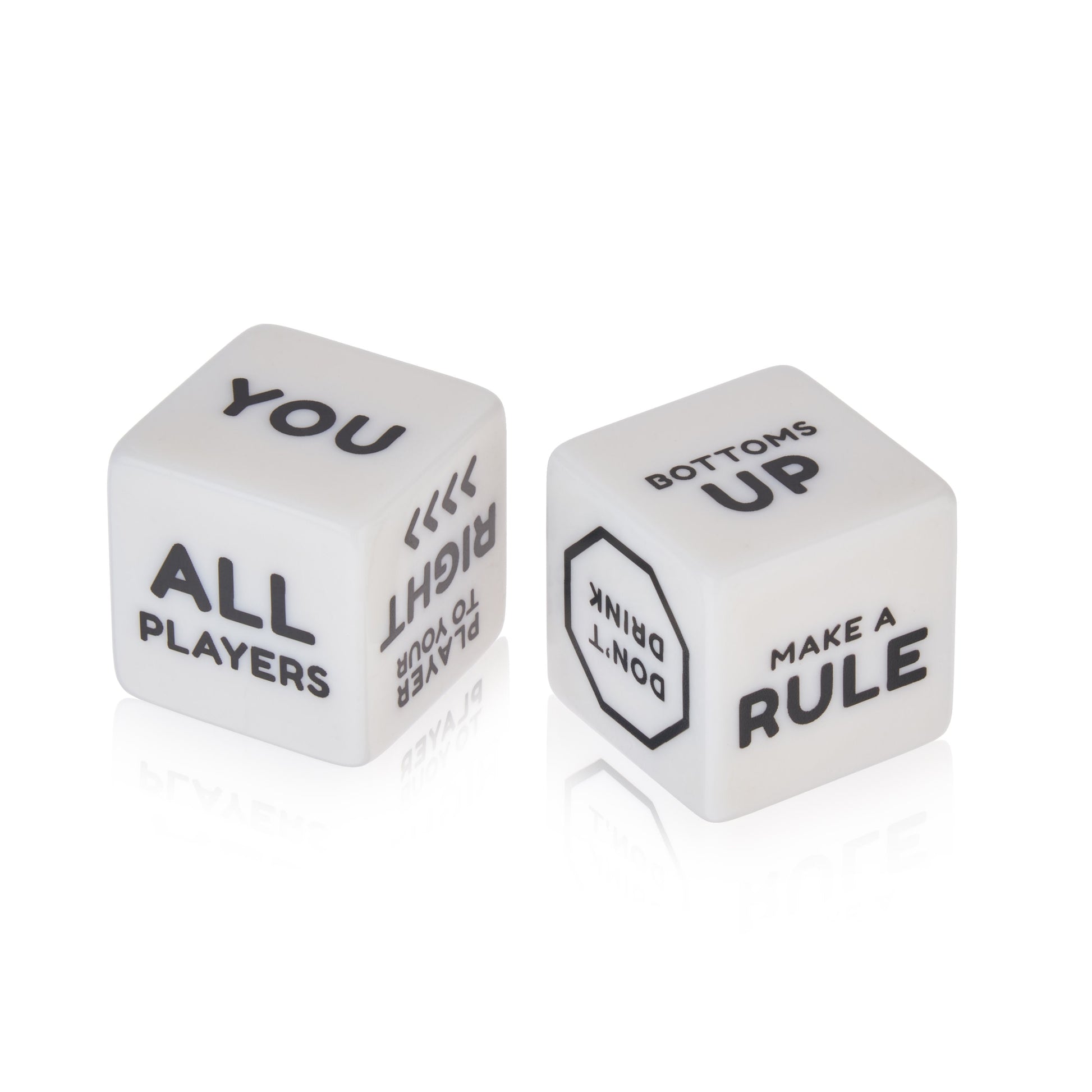 Add even more fun to your drunken nights when you play this dice game! One die decides the Who, the other decides the How Much. Just shake it up and drink it down.
