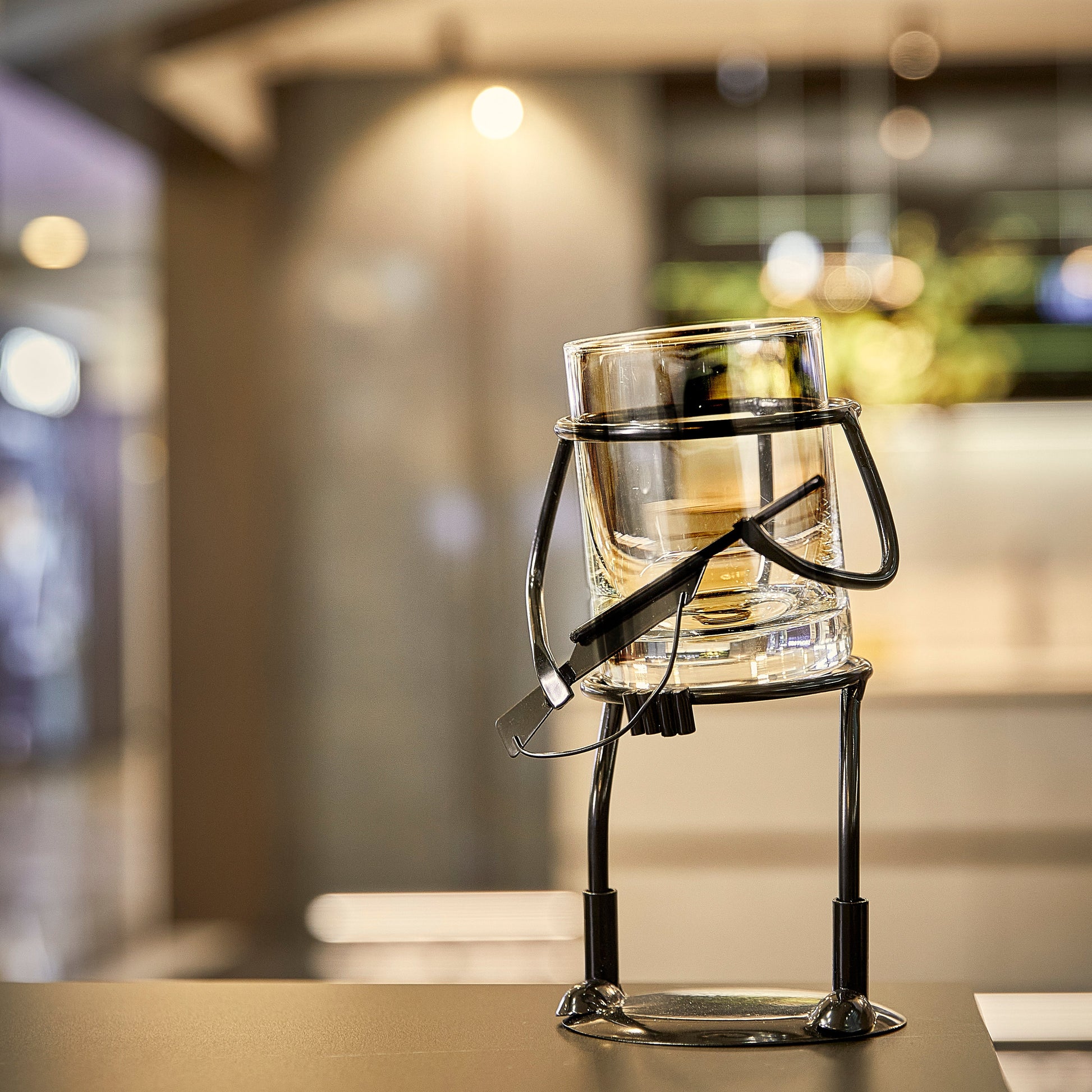 - With a wide, round metal base, the Metal Hunter Cup Holder by Gute is stable and resistant to bumps and spills. This design ensures you wonβt have to fear a catastrophic spill while simultaneously making it easy to rest your glass! The small size is perfect for small or large spaces, countertops, and tabletops within your home.
