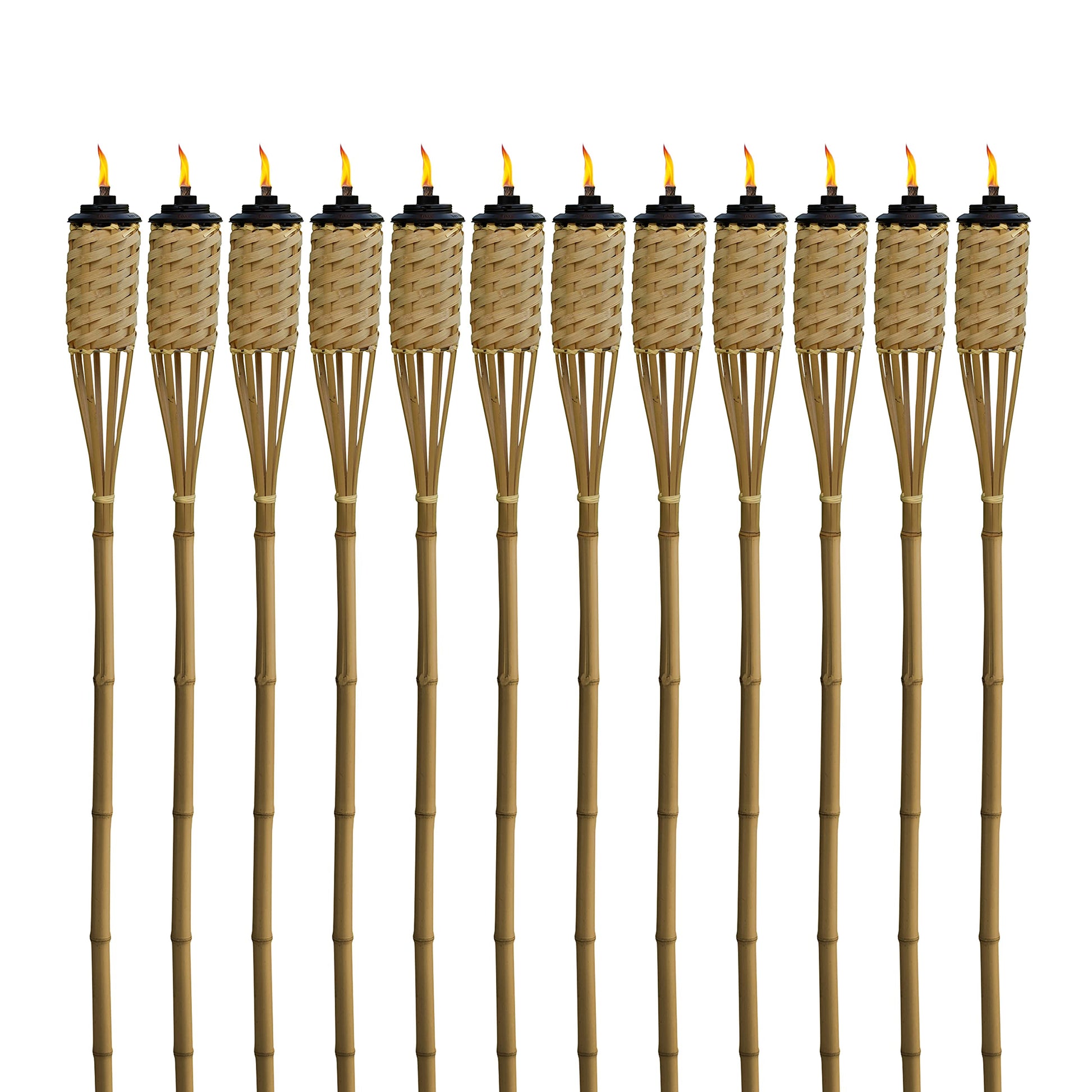 - LONG-LASTING FLAME PERFORMANCE: Designed for extended enjoyment, these bamboo tiki torches provide up to 5 hours of burn time per 12-ounce fill when used with TIKI torch fuel. Durable fiberglass wicks ensure consistent, reliable flames for any occasion.