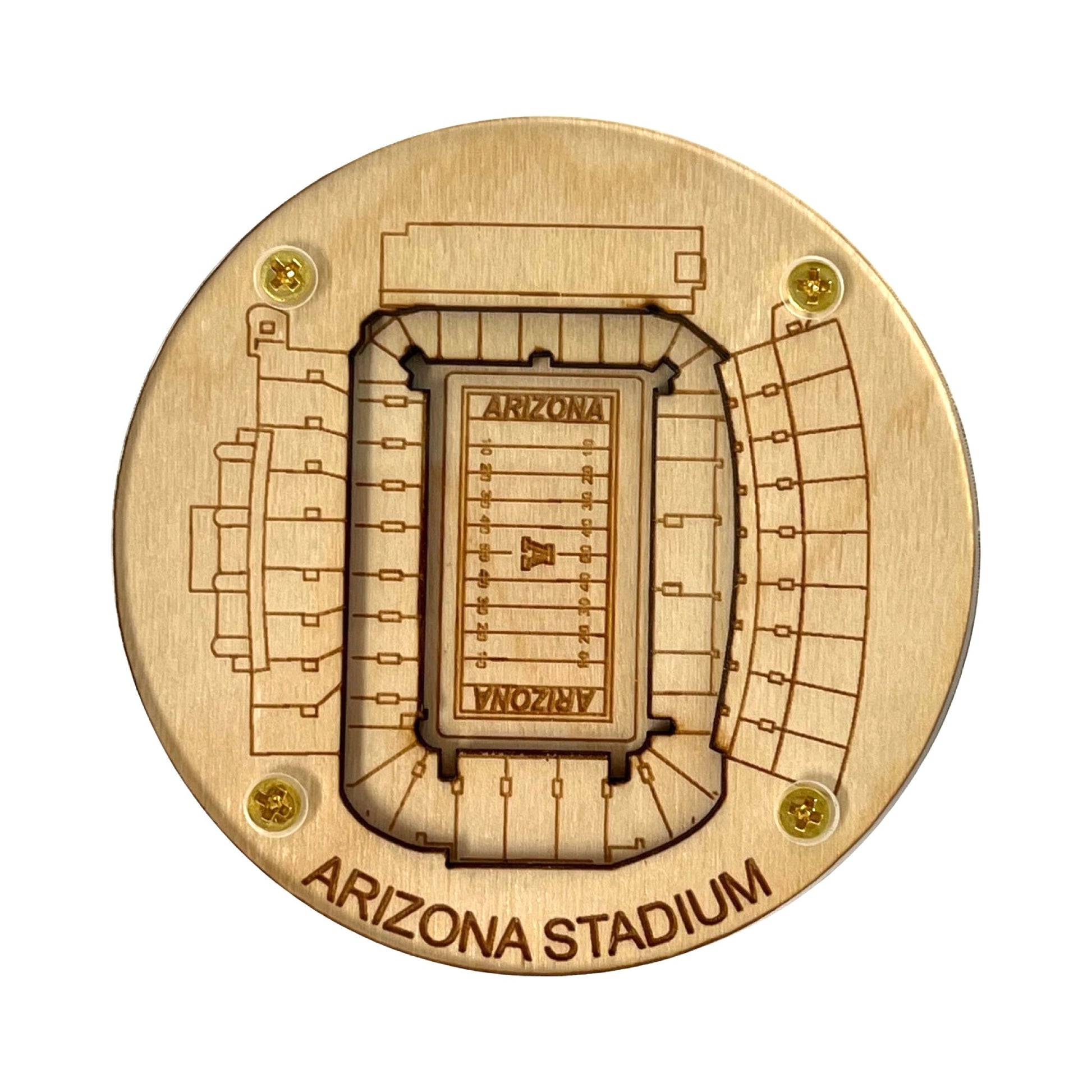 Stadium Map Art Coasters are an innovatively stylish way to celebrate your favorite sports team! Inspired by Geodesic rocks, these stunning coasters are the perfect way to show off your fan loyalty and make a great gift for the hard to shop for sports enthusiast. Crafted from three layers of wood and finished with a 1/8" piece of cast acrylic affixed with brass screws, these eye-catching coasters are 1/2" thick and 3.5" in diameter. They sold individually and yea, a bit pricey, but they're also expensive to make!