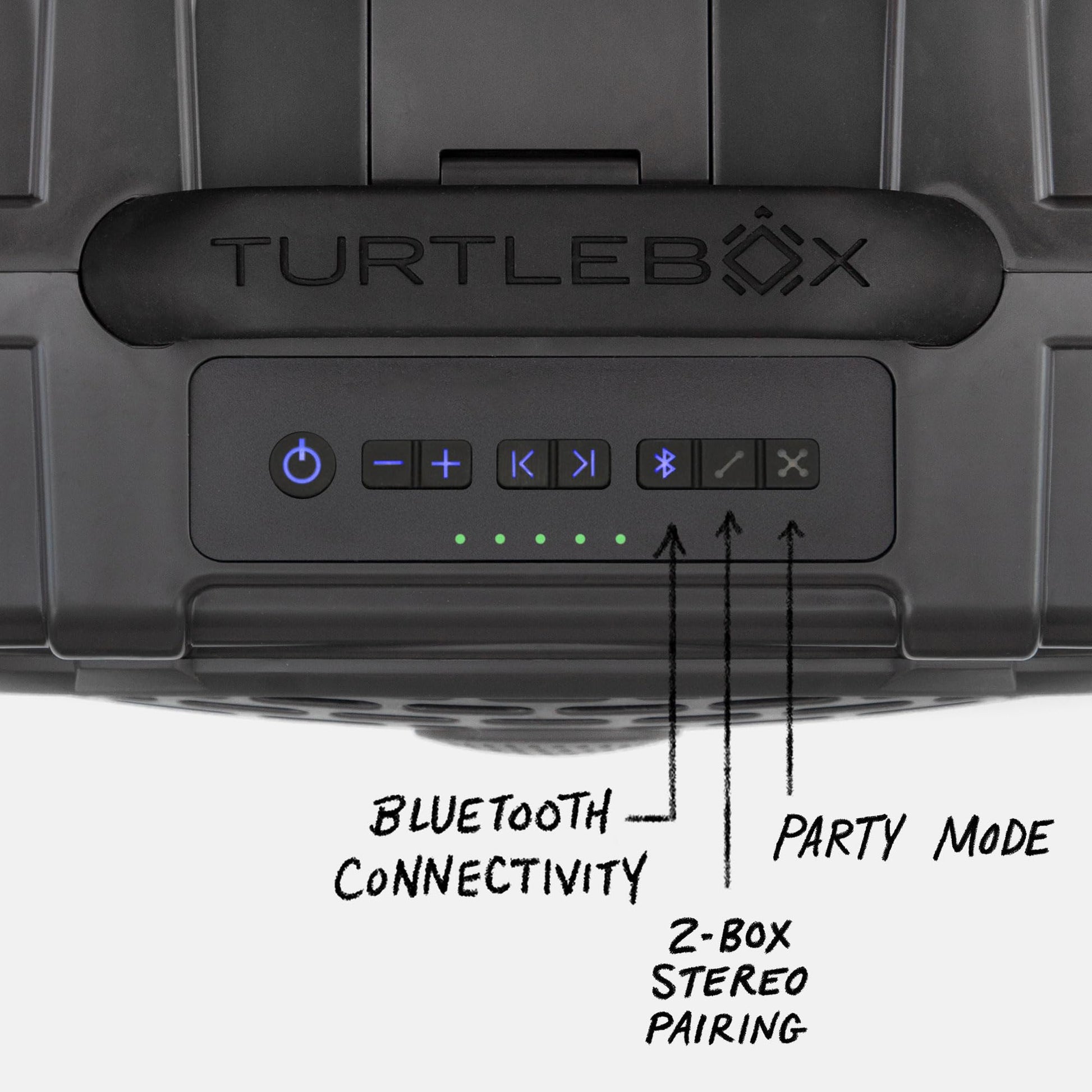 - Party Mode: Elevate your gatherings by syncing an unlimited number of Turtlebox Original speakers, creating an immersive surround sound experience that fills any space (NOTE: The Original does not pair with Gen 2 or Gen 1 Turtlebox Speakers).