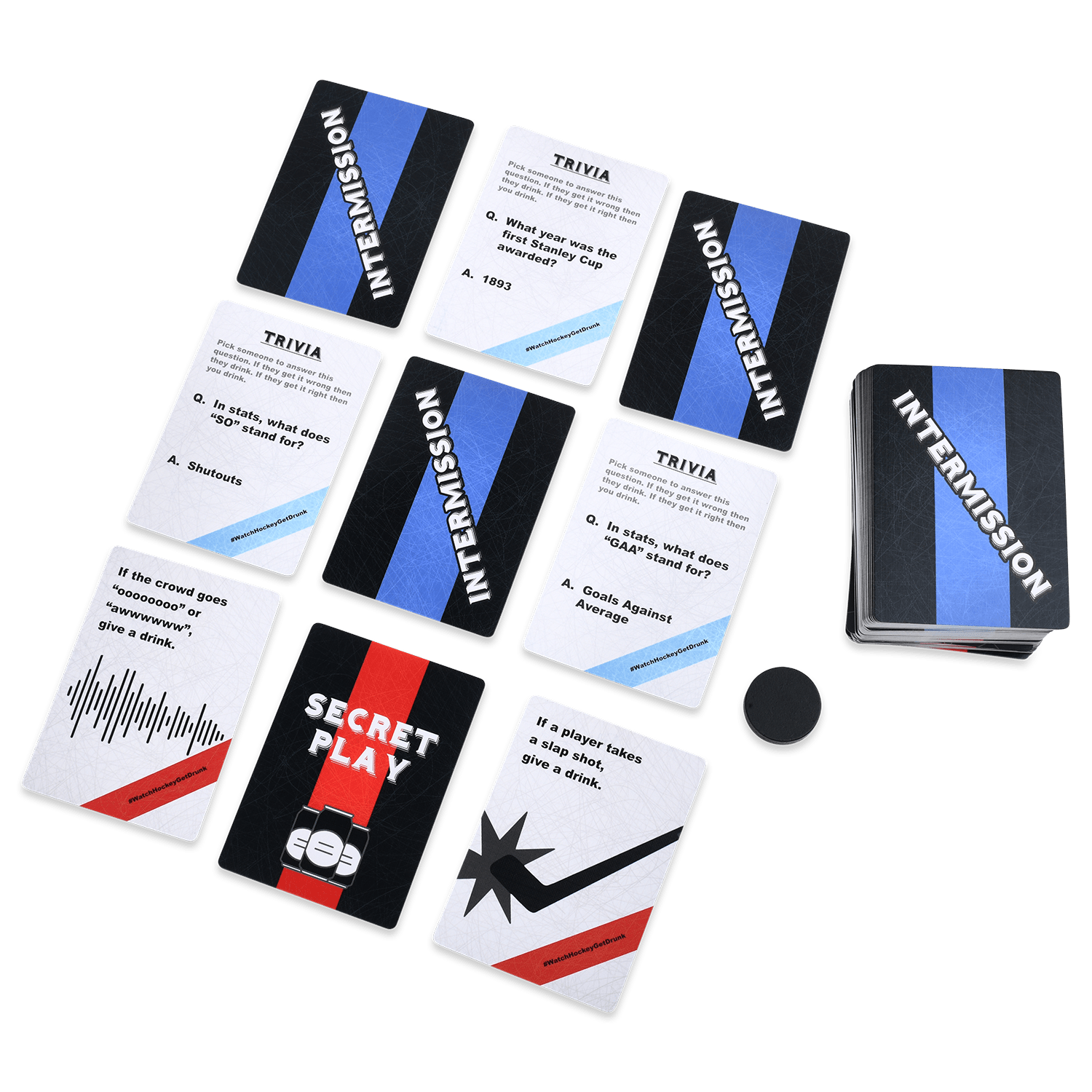 Gather your friends around a live hockey game on TV or in person and bust out this game to deal out drinks.