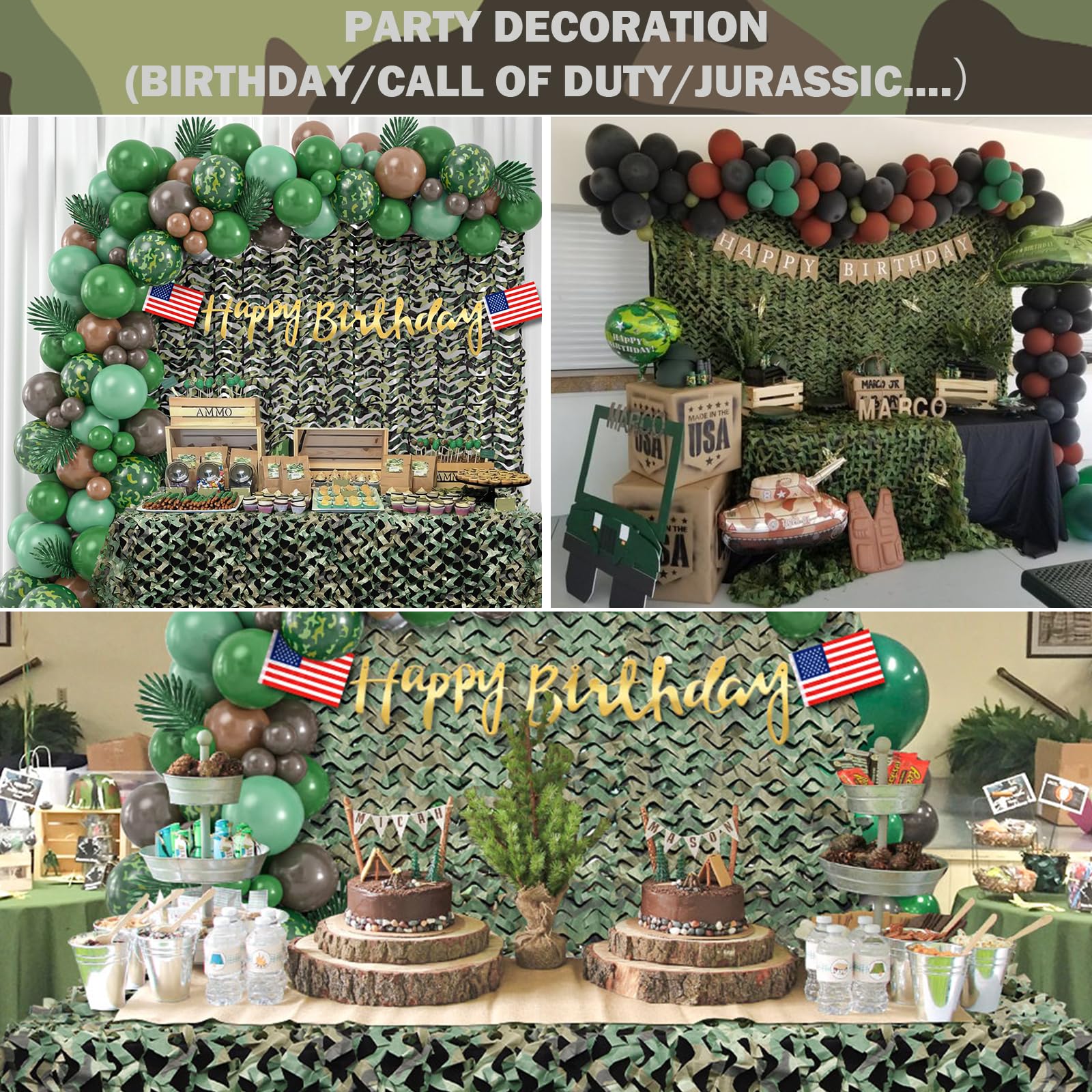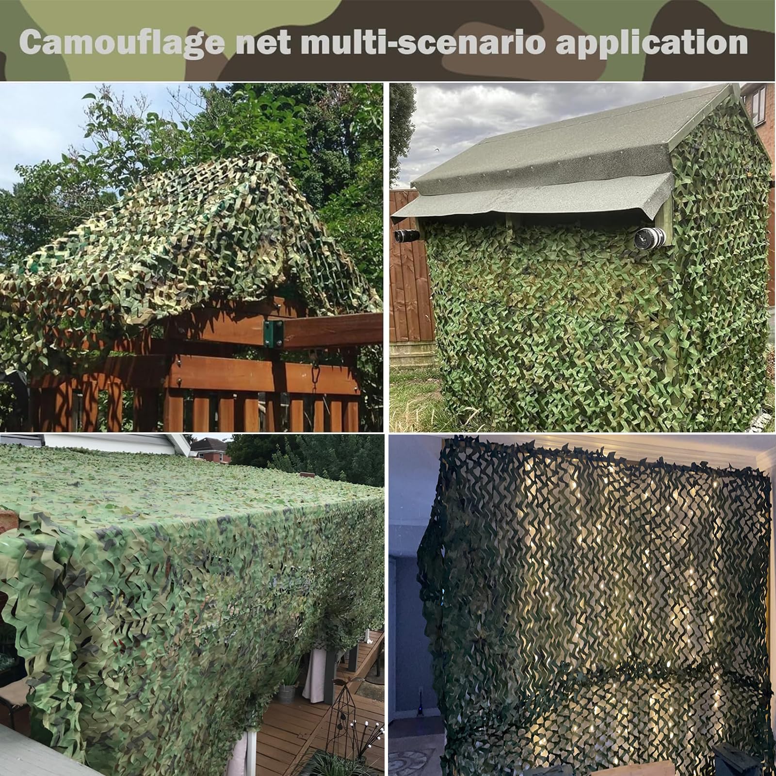 - Applicable Scenarios: Camo netting comes in a variety of colors and sizes, perfect for jungle theme decorations,military party decorations, hunting, house decoration, fencing, roof shade, camping, movie sets, bird watching, CS games, camo car covering etc. You are only limited by your imagination